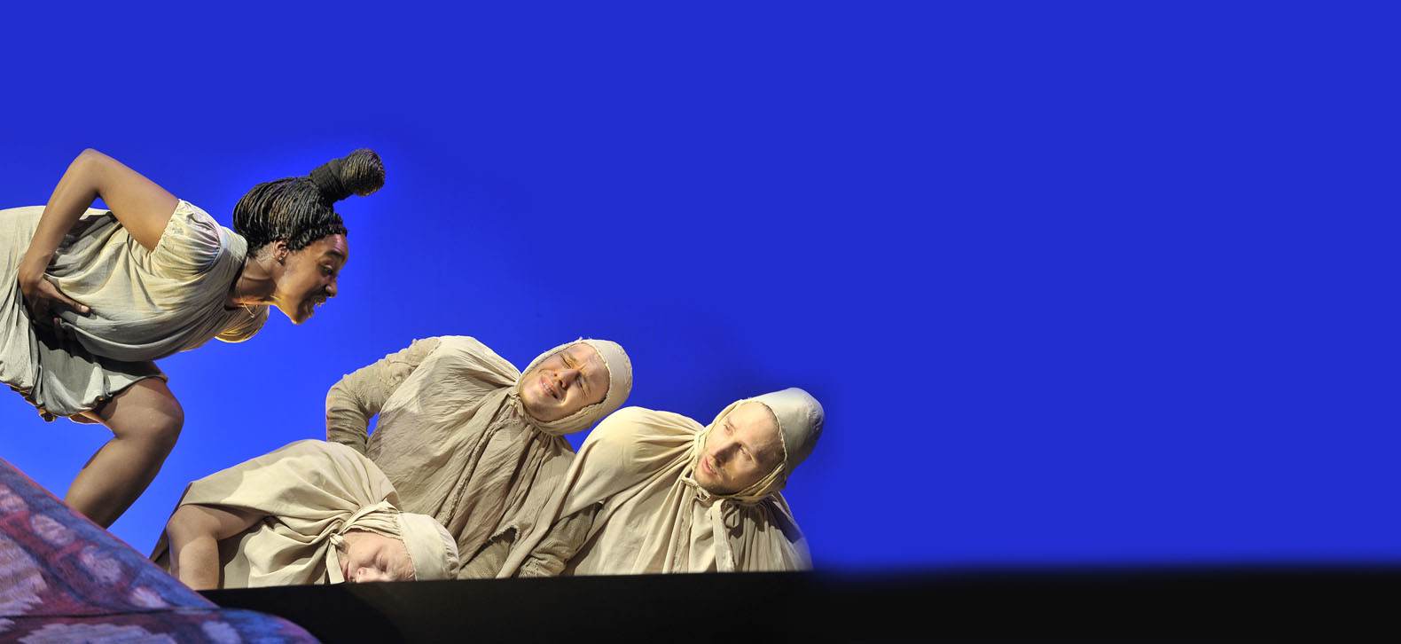 Амплитуда в этих ситуациях — от иронии до трагедии. Мне это очень импонировало. Я так хотела композицию построить. Текст — потрясающий, архаичный, древний, образный, красивый. Я не про роботов хотела поставить, которые артистично двигаются, а про людей, чьи движения души вылезают“ наружу и становятся видны в их теле. Мне кажется, самая большая проблема нашего времени — что мы ушли от истока души.